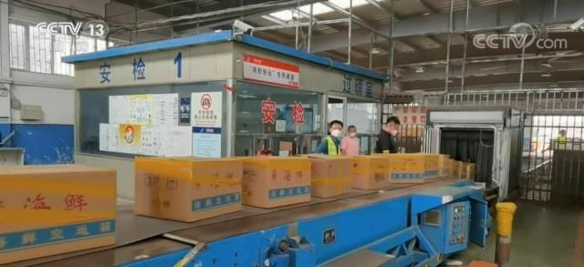 上午10时,记者在南航物流辽宁大连分公司货站看到,400多箱大连海鲜摆放在卸货平台上,工作人员正忙着收运海鲜,包装完成后入库、配运、装机。
